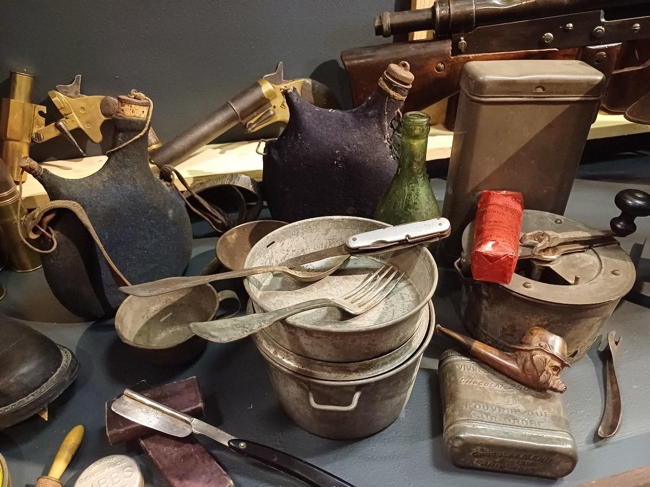 • Gamelles, ustensiles et alimentation des soldats des deux guerres mondiales.